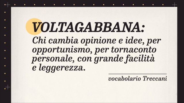valgono in ogni ambiente, frangente, occasione, fattispecie ➡️ (ossia) SEMPRE!!! ED ANCHE (specialmente) IN POLITICA… ove, invece, i voltagabbana, dopo le votazioni, possono coalizzarsi liberamente, al di fuori degli accordi pre-elettorali, essendo consentito loro il raggiro degli elettori.