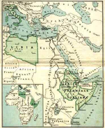 Dopo la Libia, Mussolini puntò le sue mire espansionistiche verso l’impero d’Etiopia; (in un primo tentativo di invasione dell’Etiopia, nel marzo 1896, gli italiani avevano subito uno smacco molto cocente ad Adua, con 4.000 morti) egli avrebbe voluto regalare agli italiani affamati di terre un “posto al sole”.